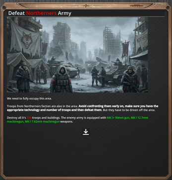 "Troops!" is a post apocalyptic real time strategy game that takes place after an arachnid attack destroyed all civilization. Fortify one of the last surviving human settlements, gather resources, build & supply an armoured force to retake back the land and destroyed cities from the arachnids but also from other human factions. And figure out ... where did they came from?